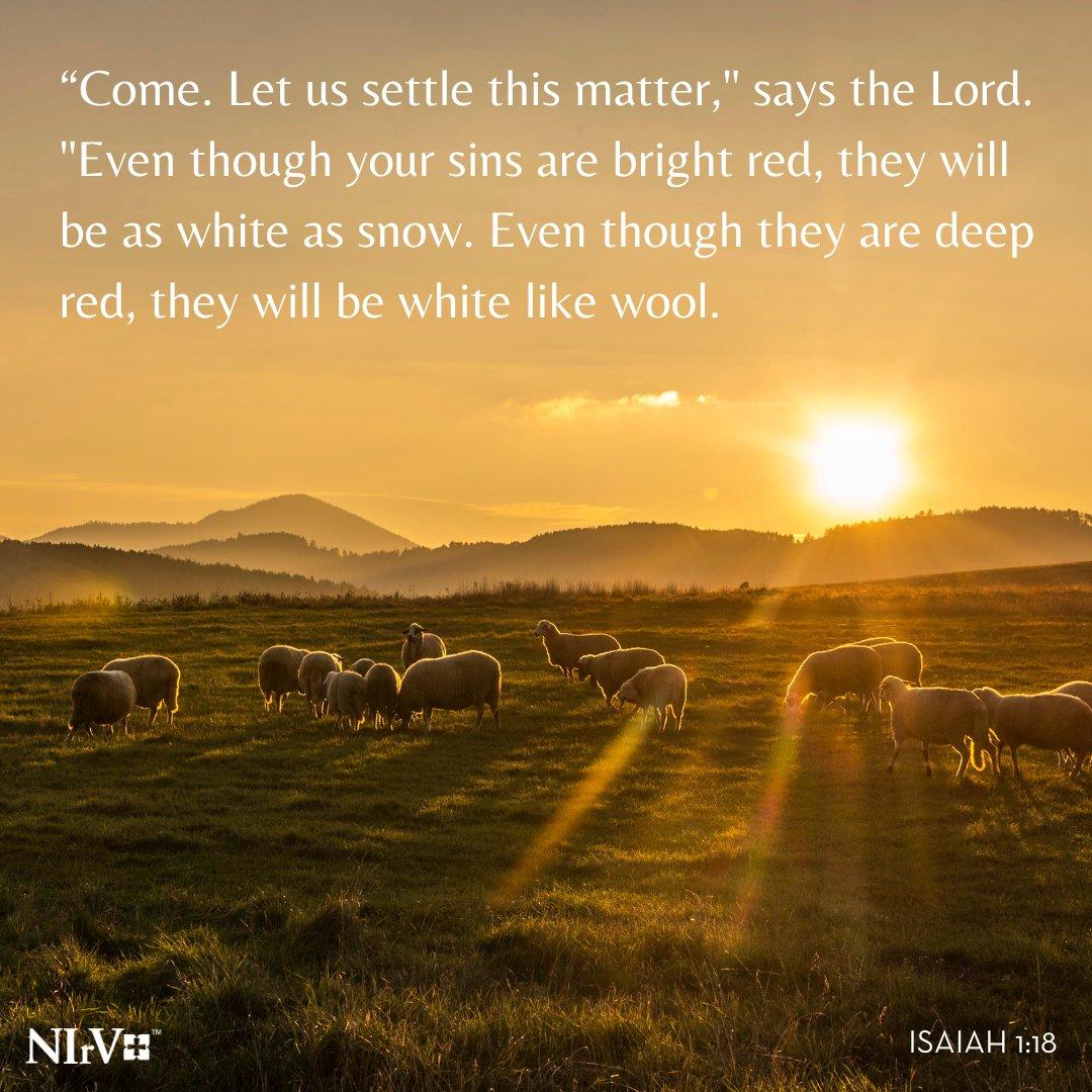 “Come. Let us settle this matter,” says the Lord. "Even though your sins are bright red, they will be as white as snow. Even though they are deep red, they will be white like wool."