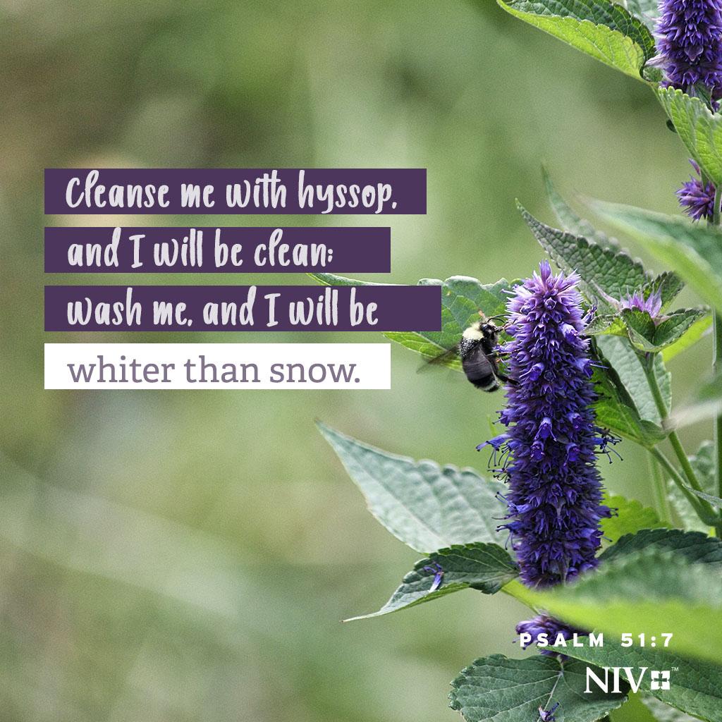 Cleanse me with hyssop, and I will be clean; wash me, and I will be whiter than snow.